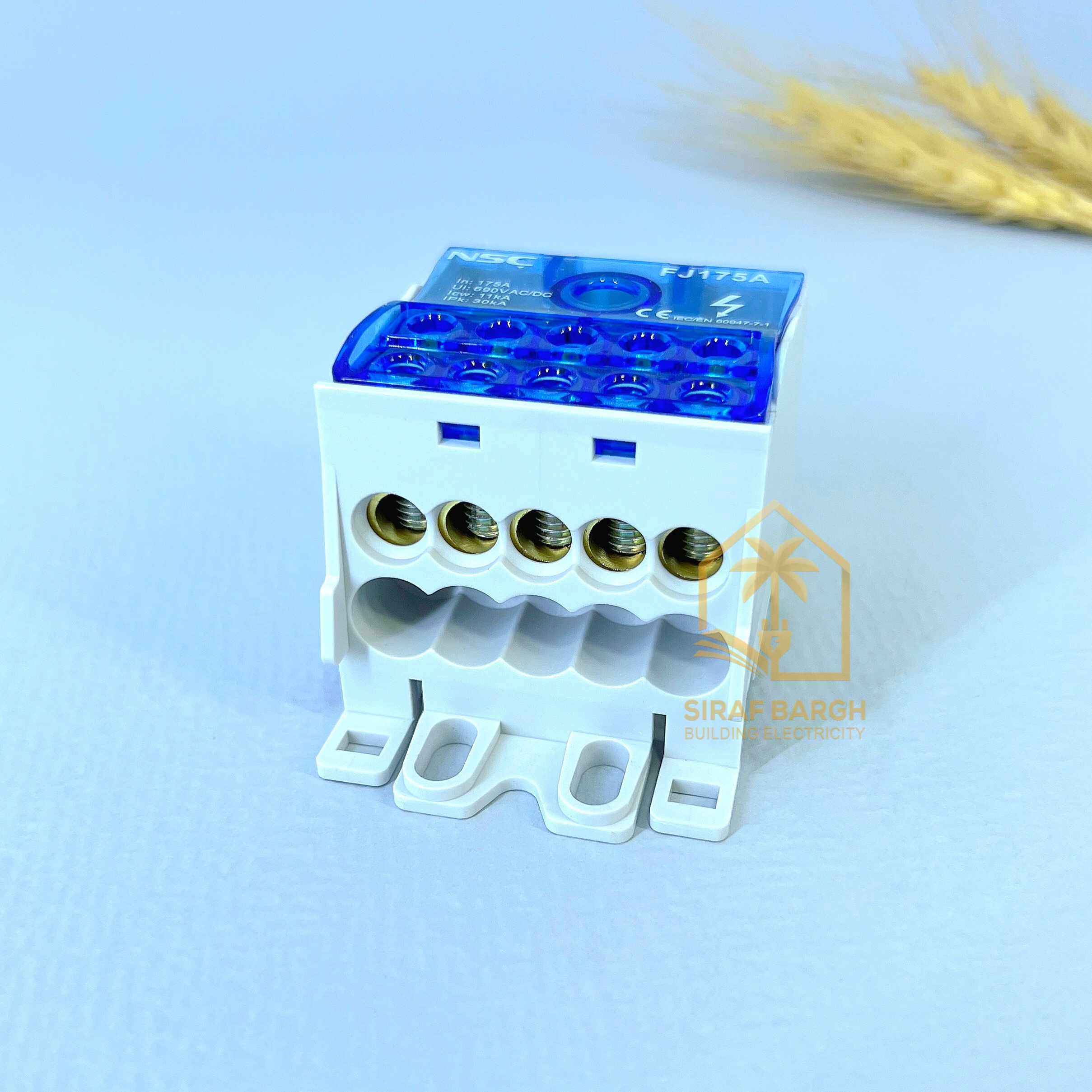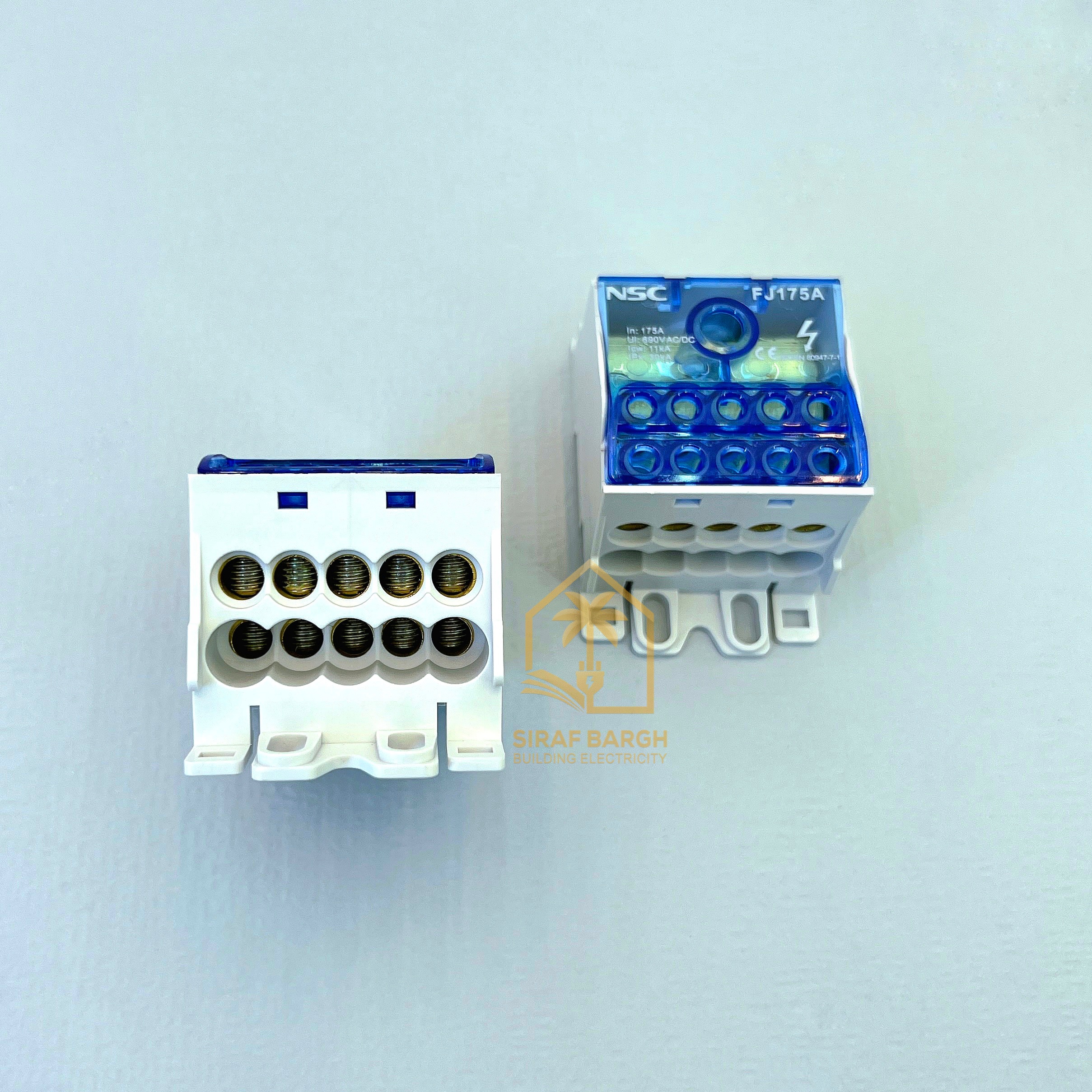 ترمینال باکس NSC یکی از ترمینال باکس های با کیفیت در بازار ایران است که با نام باس بار نیز شناخته می شود و برای ایجاد انشعاب مورد استفاده قرار می گیرد. ترمینال باکس NS22-FJ175A در دسته ترمینال های توزیع قرار دارد و قابلیت عبور جریان 175 آمپر را دارد. عملکرد ترمینال توزیع به این صورت است که یک سیم به عنوان ورودی وارد ترمینال شده و ولتاژ و جریان مورد نظر توسط شینه هایی که داخل ترمینال تعبیه شده، توزیع می گردد. استفاده از ترمینال های توزیع برای زیباسازی تابلوها و کاهش هدررفت و مصرف سیم و کابل مناسب است.
